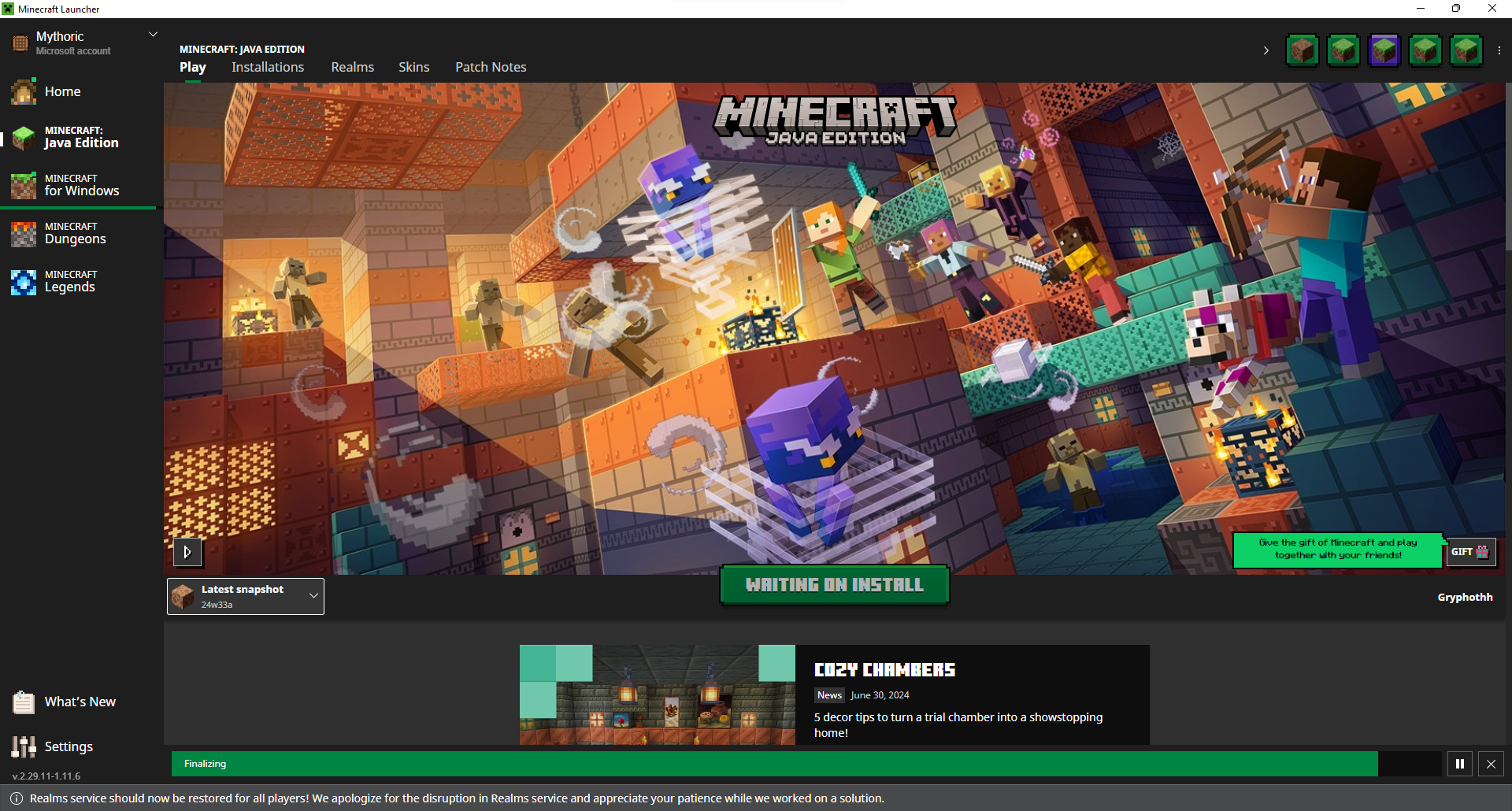 I tried to start up Minecraft, but it was stuck on the "Finalizing" process for 15 minutes straight. I closed the launcher, but when I opened it up, it was still "Finalizing" yet did not let me pause or cancel the process (the buttons did appear, but they are unclickable) and has locked me out of starting the game. I ended the task via Task Manager (this is a Windows launcher) but it still was "finalizing." So I resorted to restarting my computer, same story. I tried uninstalling and reinstalling the launcher, same issue.