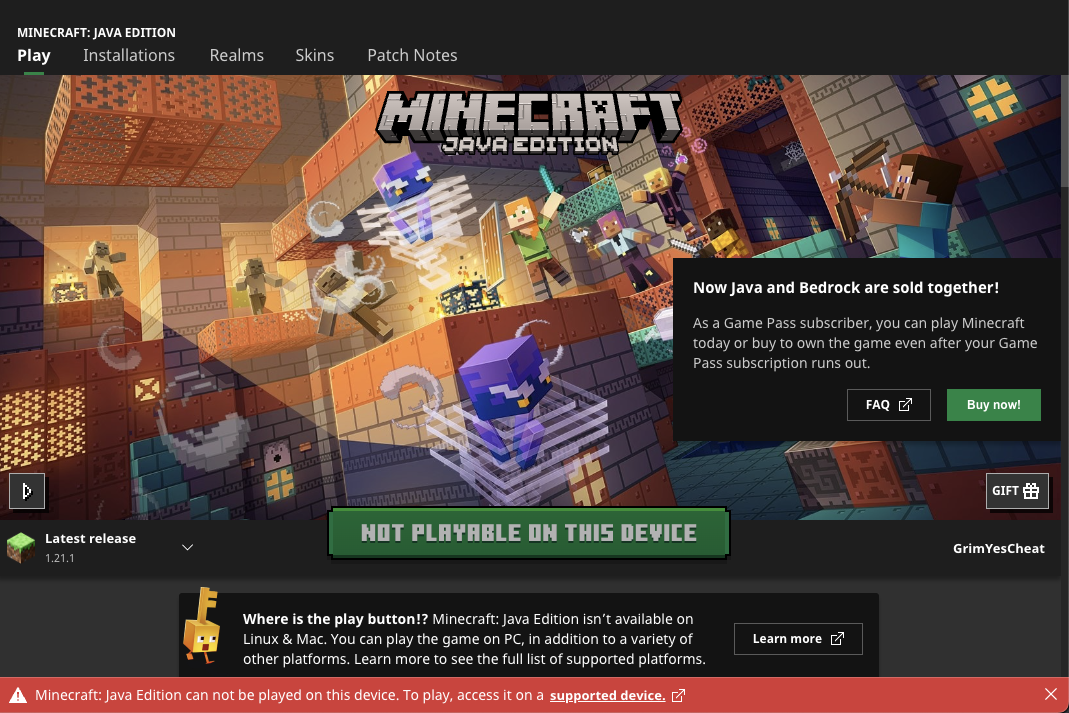 So i updated my minecraft launcher today and saw that java was unavalible on mac and linux which i think is a bug or microsoft is not letting us play