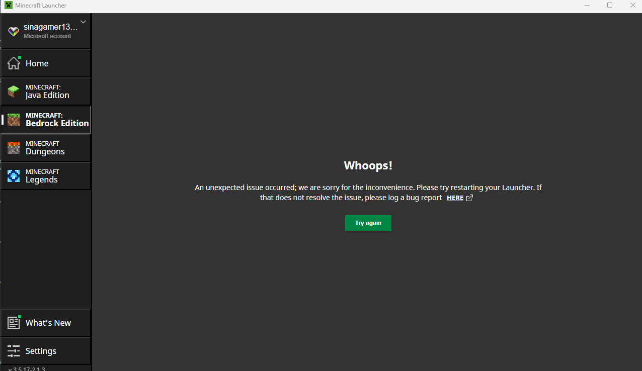 for any minecraft launcher tab I get this error