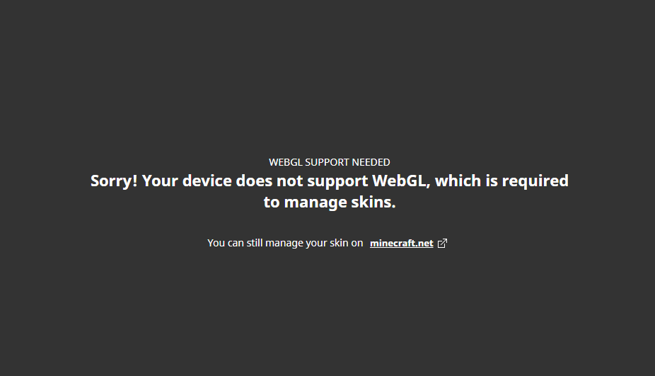 Iām unable to access the skin tab, the Minecraft launcher reports that my device does not support WebGL, but when i access https://get.webgl.org/ it tells me it does, what is going on?