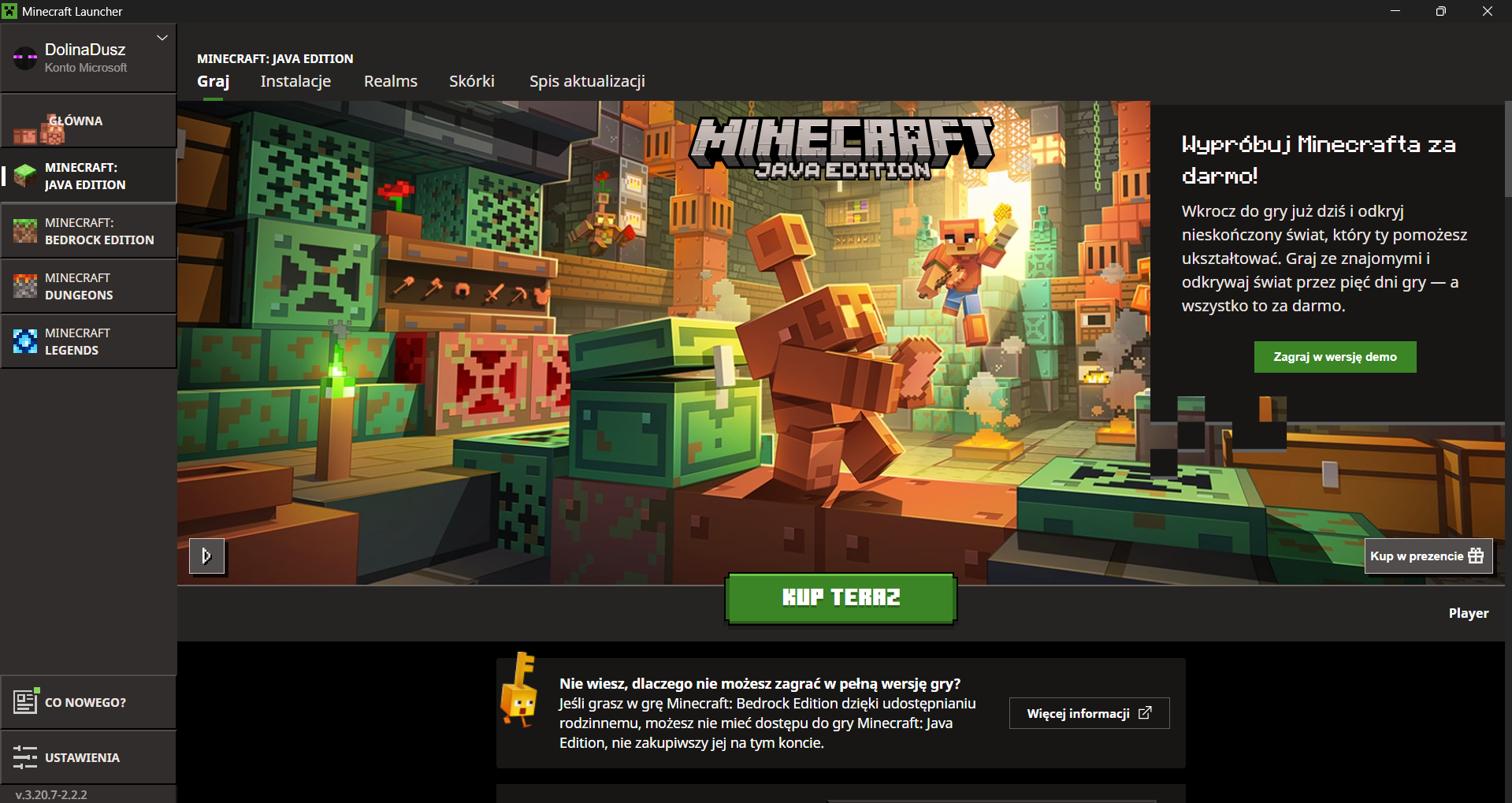 During Minecraft's 15th anniversary, I bought the Standard game package. After downloading the launcher, I only had the option to play the Bedrock version, but the Java version required re-purchase.