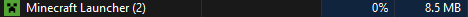 i dont have good memory but i know for a fact that it never did that before and i am pretty sure its the reason why minecraft launcher is not working, it will never take more than 1 minute to load. and i put a image of the task on task manager am not sure if it looks bad because i can see it for some reason, but its stuck on 8.5 MB because its stuck on a number of how much memory its using means its not working/ cant find something and takes a nap it will sometimes use more or less memory but that does not matter because its broken anyways,