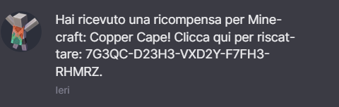 Ciao! ieri ho guardato la live corretta 5 minuti per avere il mantello del copper… il problema è che l’ho riscattato su minecraft redeem, mi dava che lavessi riscattato, allora sono andato sul minecraft launcher ma non me lo dava… ho aspettato ancora fino ad oggi e ancora non me lo da. come posso fare?