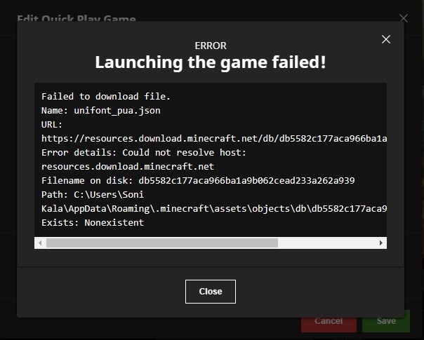 Error details: Could not resolve host: resources.download.minecraft.net