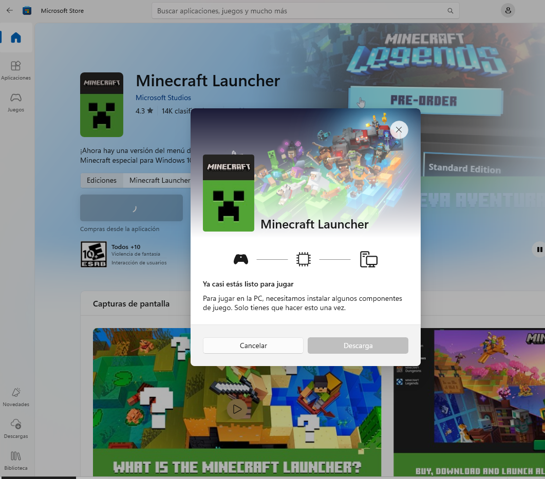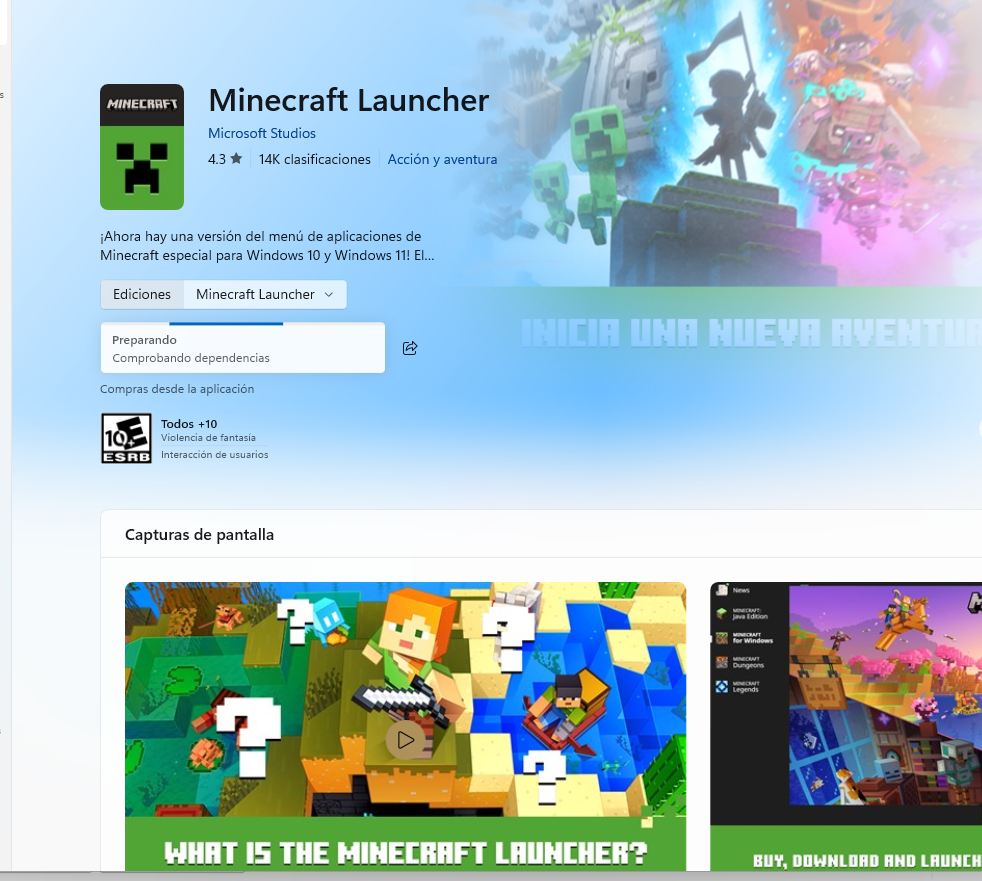 Once in the Microsoft Store, I wanted to reinstall the launcher first (so I could log in and restore my Minecraft Bedrock Edition). However, after clicking the install button, the process would freeze on "Queued." or "Preparing dependencies" and would never install. I closed and reopened the Microsoft Store several times, but it still wouldn't install; it would freeze at every stage. If I paused the process, it would stay there and never install or resume. I tried everything: restarting my PC repeatedly, logging into my real Microsoft account to match the launcher account (because I have a different one in the Microsoft Store), and installing it from the official Minecraft website (which didn't work), and it was still stuck