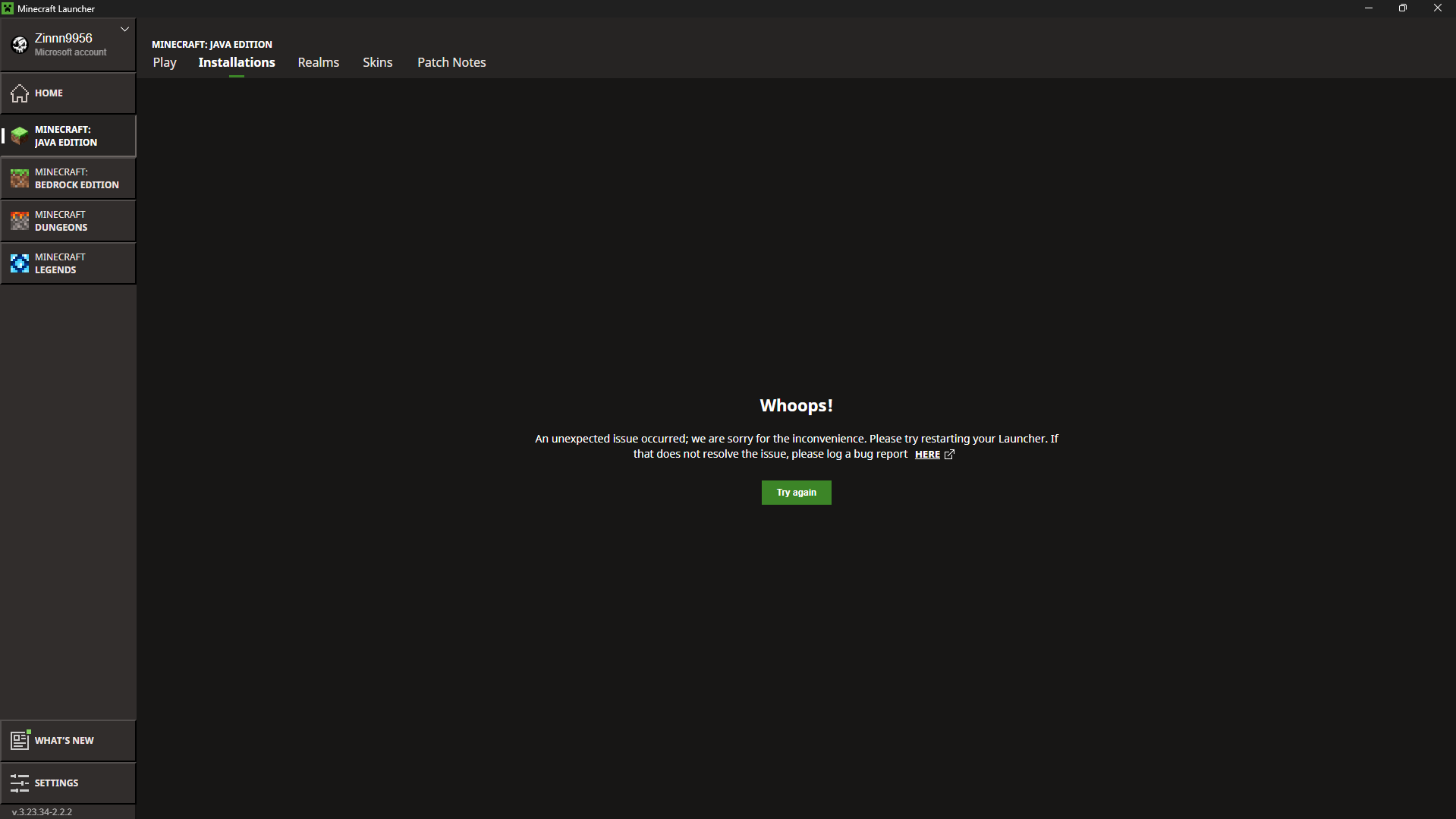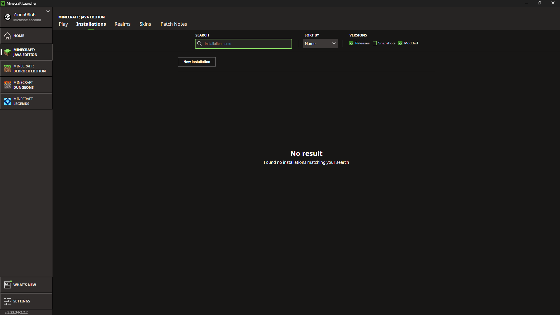 The launcher does not create the new installation. The option either becomes unresponsive, fails to save, or disappears after attempting to confirm the setup.
