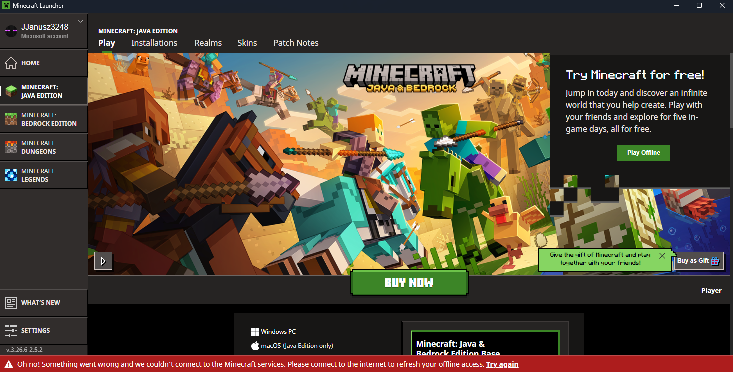 Launcher thinks I’m offline. I tried two internet connections. Both failed.