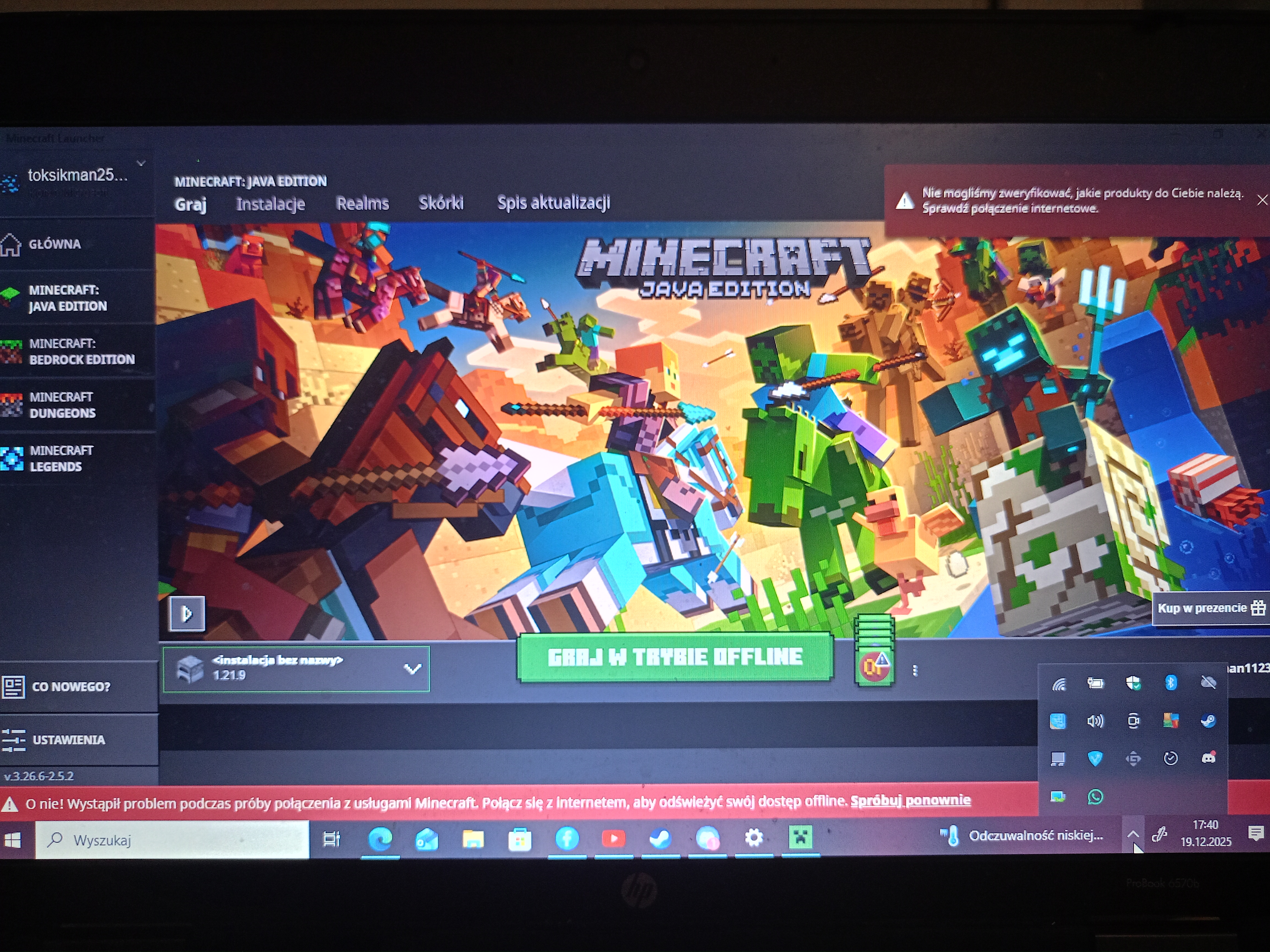 When I start Minecraft it shows that I have no internet and I have it on Bedrock and Java, I have reset the Launcher 6 times, uninstalled it 2 times, restarted the computer and even the Java Engine and I still have the same problem, can I ask for help? I will be grateful.