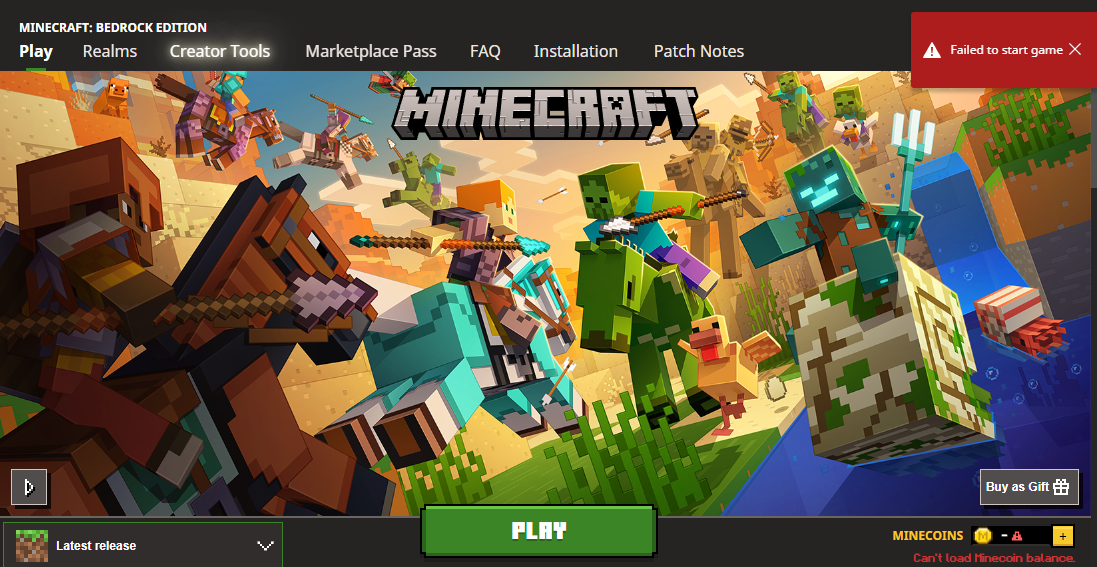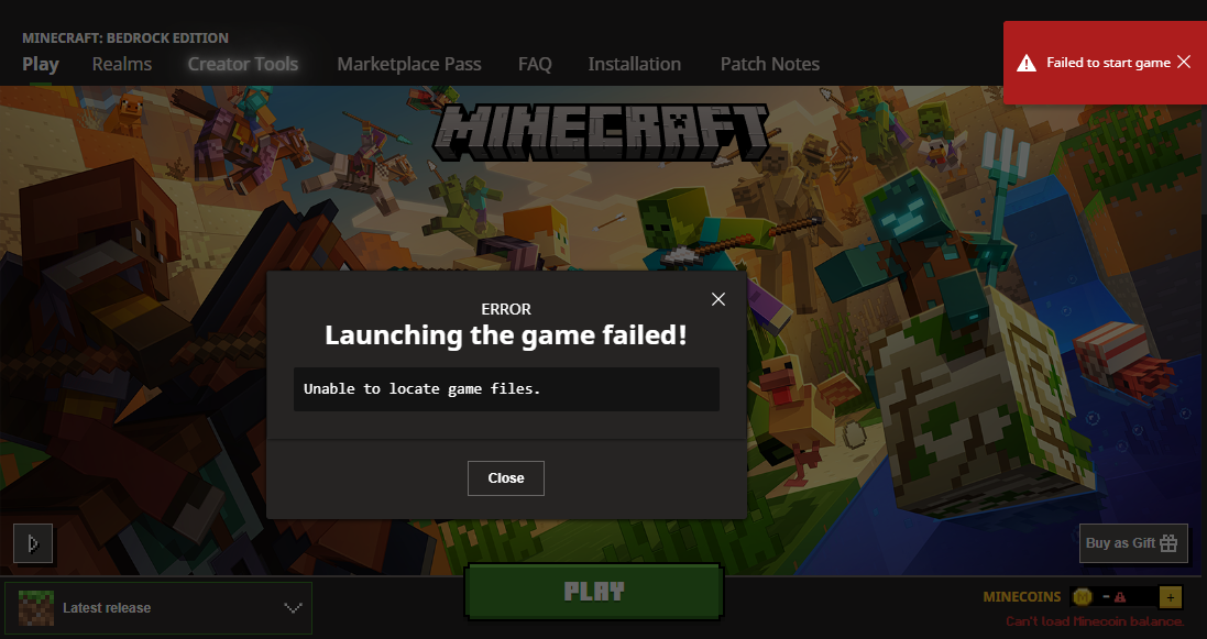When I was on the launcher, I installed bedrock edition and then tried to launch it, expecting it to open, but it gave me an error. I tried installing it again, and I got the same error. After re-opening the launcher and pressing the play button on bedrock edition, it now just says “Failed to start game.” Java edition works fine, it’s only with bedrock.