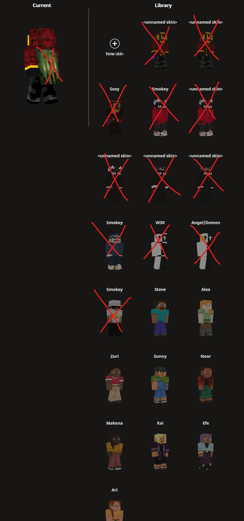 Observe the Skins tab: all previously saved skins have disappeared from the list including the one you just saved.