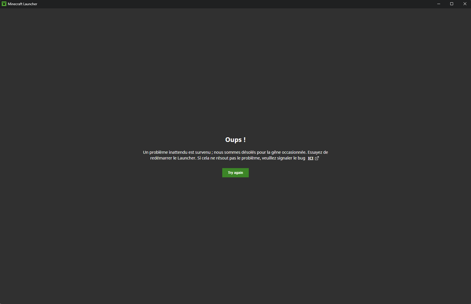 When I try to launch the Minecraft Launcher, it’s loading. I can see for few seconds the Launcher screen but after got a repeating error. Can’t play !