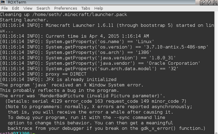 [20:46:25 INFO]: Minecraft Launcher 1.5.3 (through bootstrap 5) started on linux...