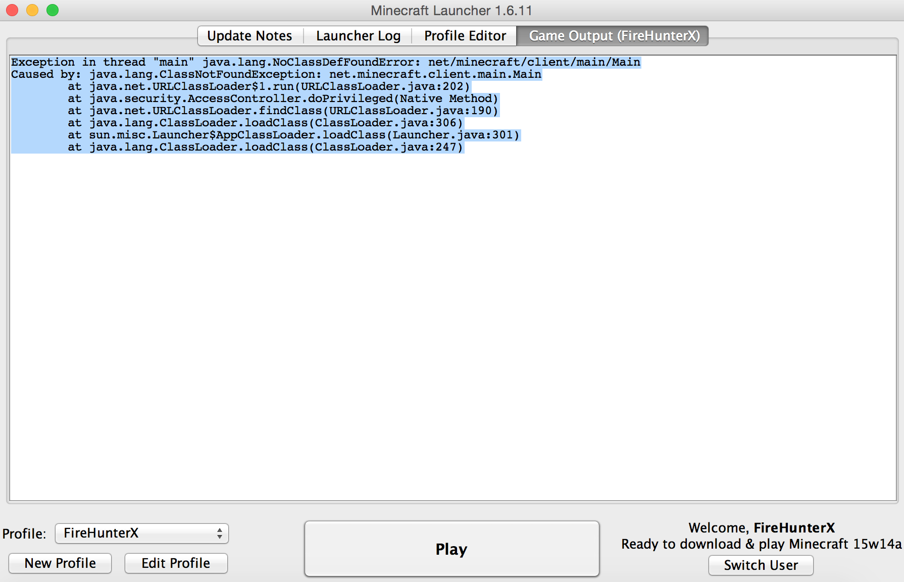 Exception in thread "main" java.lang.NoClassDefFoundError: net/minecraft/client/main/Main