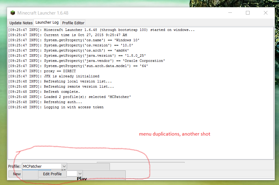 Video clip of the launcher working correctly, then begins to have visual corruption when the "Profile:" drop-down box is used.