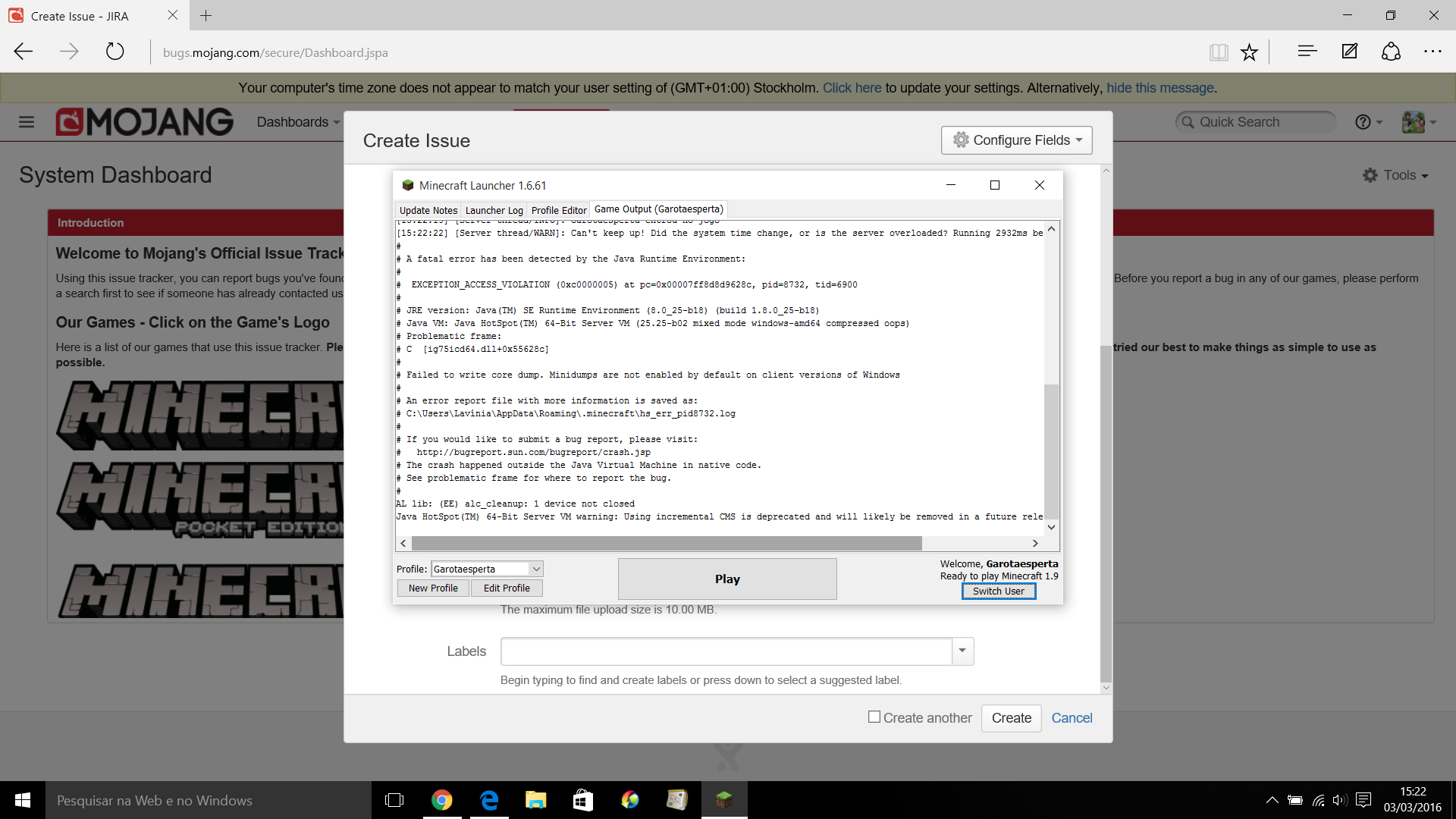 Após atualizar para 1.9, não consigo mais jogar. Entra e sai em segundos, dando o erro em anexo.