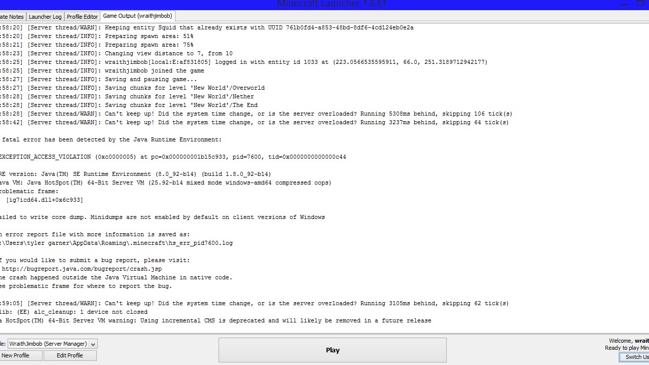 I loaded up pc minecraft as usual and got to the main menu fine on the newest update which was 1.10 then I wanted to make a new world so I did but when it loaded the new world the game immediately crashed and stop working. So I decide to repeat the steps I did about 5 times to see if I did anything wrong and it still crashed. So I went back on 1.9.4 update and they worked fine I loaded the world fine and stated playing, it was just 1.10 update I had problem so I asked my friend which as minecraft and it happed to him as well so this is a bug to do with 1.10 update as some people can get on a play but other cant. I have sent a attachment on what is says for me and my friend