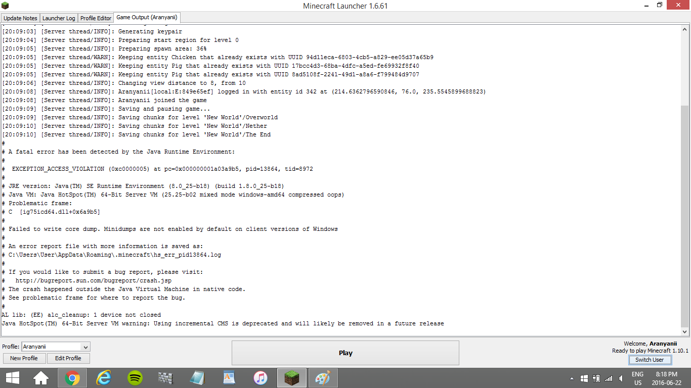 I can open the Minecraft app on my desktop, get into my profile and click the world I'd like to play in, it will load me into the world but soon after I freeze and the screen changes to a white screen with a bunch of messages. I've never experienced this with any other games on any other format.