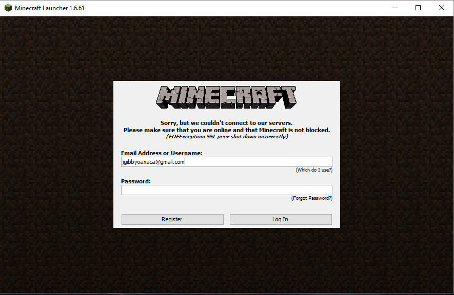 > account on the MC launcher I get this msg.[ EOFException: SSL peer shut