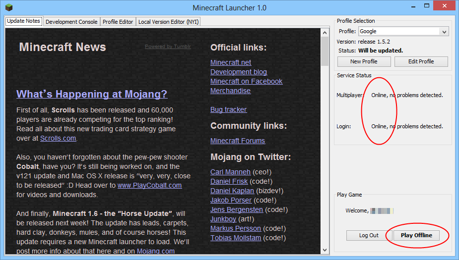 3. Username is shown, but only options are log out or play offline. Does not ask for password.