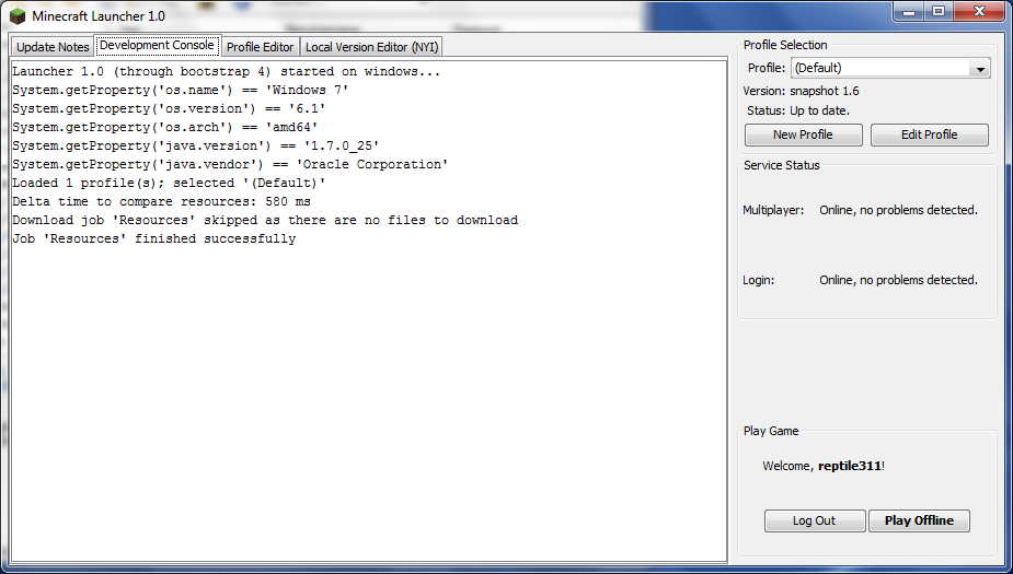 When I'm starting the launcher it says "Multiplayer ok, Login ok" and then shows the "play offline" button.
