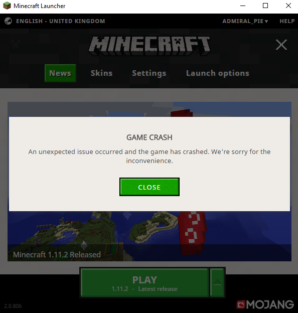 Launcher opens, loads, but when clicking Play it disappears as if loading then pops back up with error message attached. Changing profiles/minecraft versions does not make a difference. New launcher downloaded today, have already uninstalled and reinstalled.