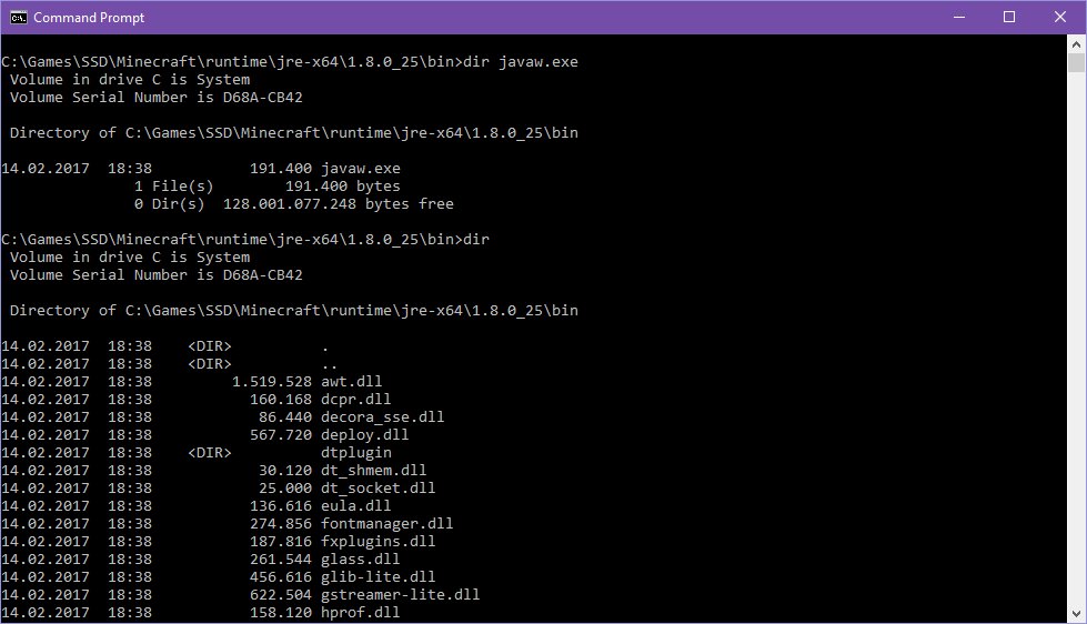 Path: C:\Games\SSD\Minecraft\runtime\jre-x64\1.8.0_25\bin\javaw.exe