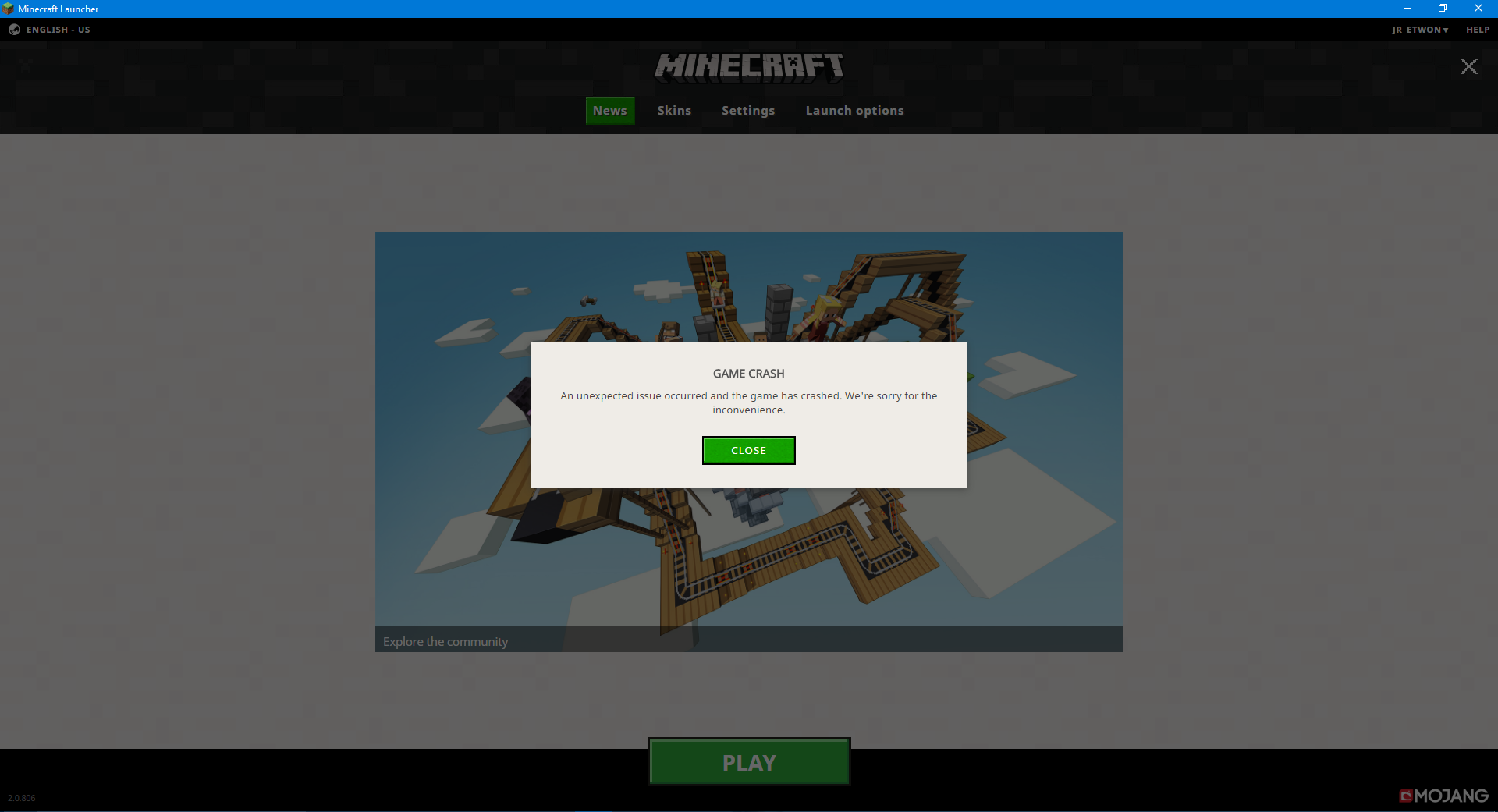 I click play and the game downloads which ever version i picked (This happens on any version) It starts to load and then comes with an error message saying: Game Crash An unexpected issue occurred and the game has crashed. We 're sorry for the inconvenience.