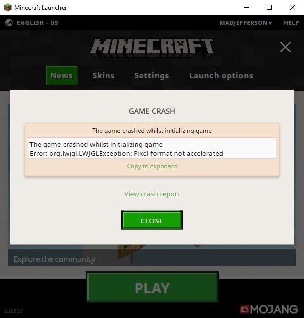 Message: The game crashed whilst initializing game. Error: org.lwjgl.LWJGLException: Pixel format not accelerated.