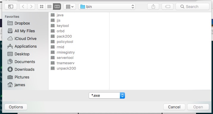 Not too long ago I downloaded the new Minecraft launcher and went to change my Java executable to a local version. We all know that OS X doesn't use PE EXE files for its executables. OS X is Unix based. I noticed a JRE was packaged with the launcher which I do on my own applications, and you've given the option to change to an external location. I'm happier running my own JRE installation so I went to change it. The bit I have a problem with is that it wants the popup Finder window to select an executable in the form an EXE (check attachments for image) and I have to change that to select my Java distribution.