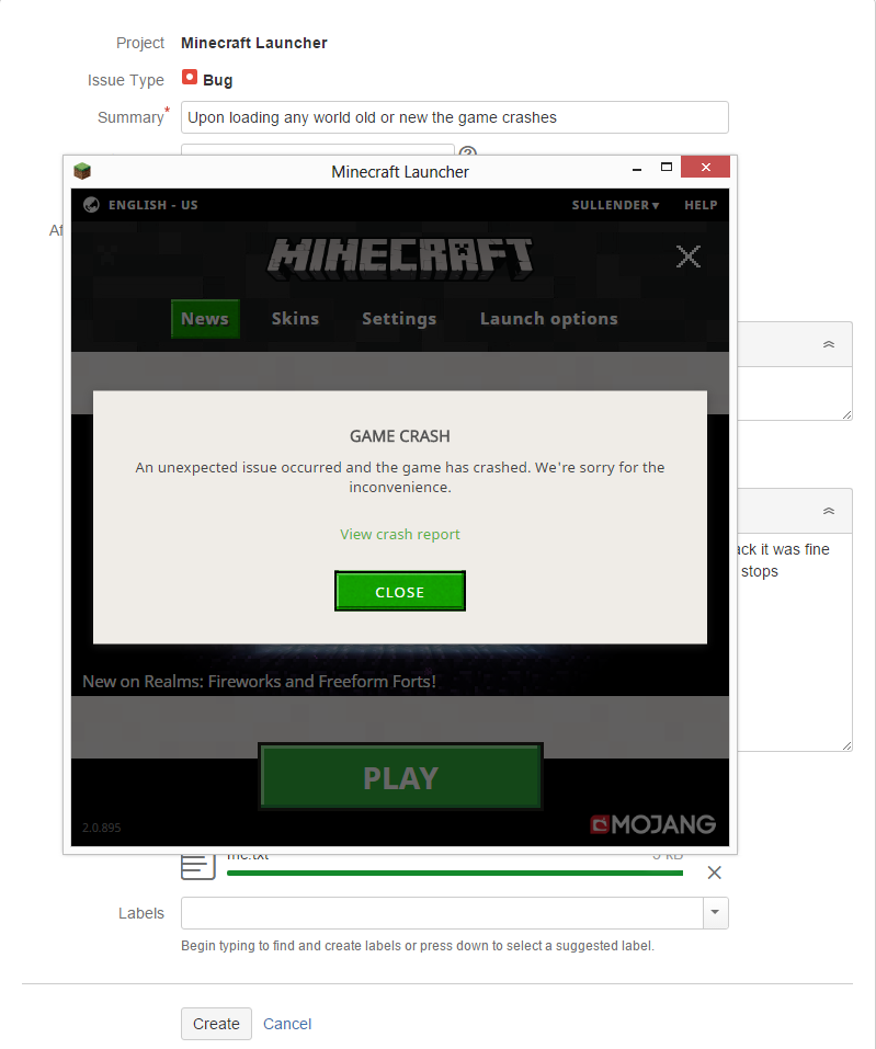 Since the new update i cant play minecraft anymore (see mc.txt for more info?) a few hours back it was fine now upon loading a world single - multilayer the game loads until around 95% it stops responding and then goes back to the launcher giving me an unexpected error.