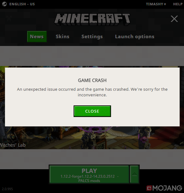 I open up the Minecraft launcher, start game, and it crashes, saying "An unexpected issue has occurred and the game has crashed." I try getting the crash report, but it's stuck on "Waiting for log output".