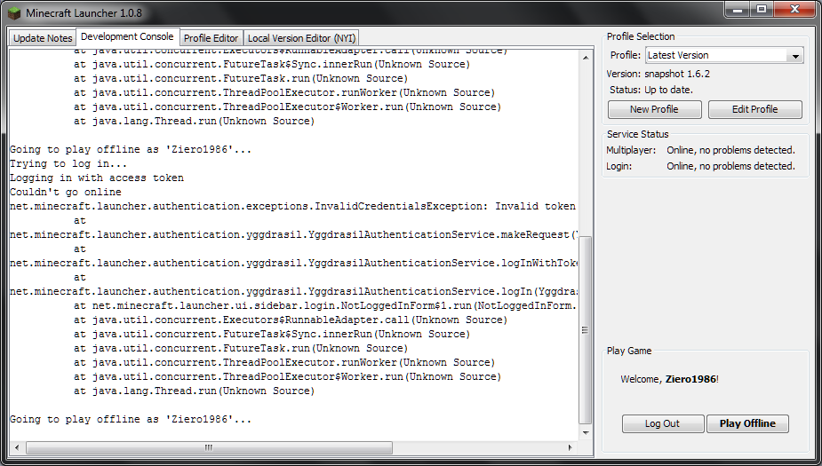 Going to play offline as 'Ziero1986'...I am also going to attach a screenshot...