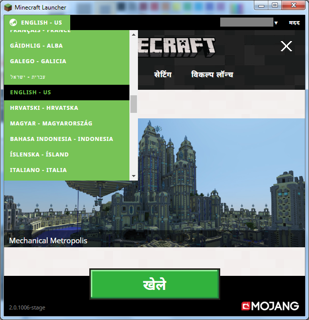 There are two languages named "English - US". One is normal en-us language and second is Hindi (as "hi" in launcher_profiles.json).