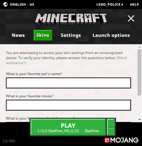 You need to answer your security questions before viewing your skin.