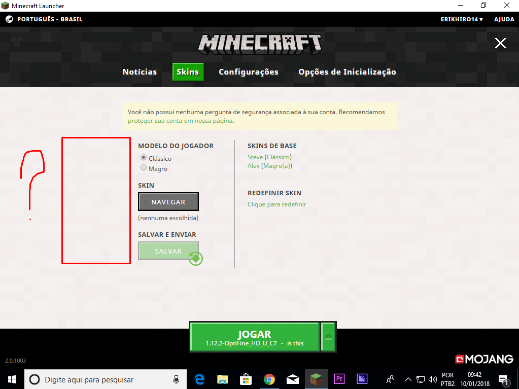 my problem is in the "Skins" tab, when I change skin and see how it was in my little doll does not appear the skin nor the doll. Already updated the Minecraft Launcher and nothing solved.