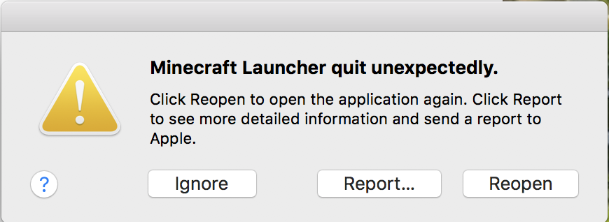 Picture two "Minecraft Launcher quit unexpectedly shows up if I have "open output log when the game starts" set to on.