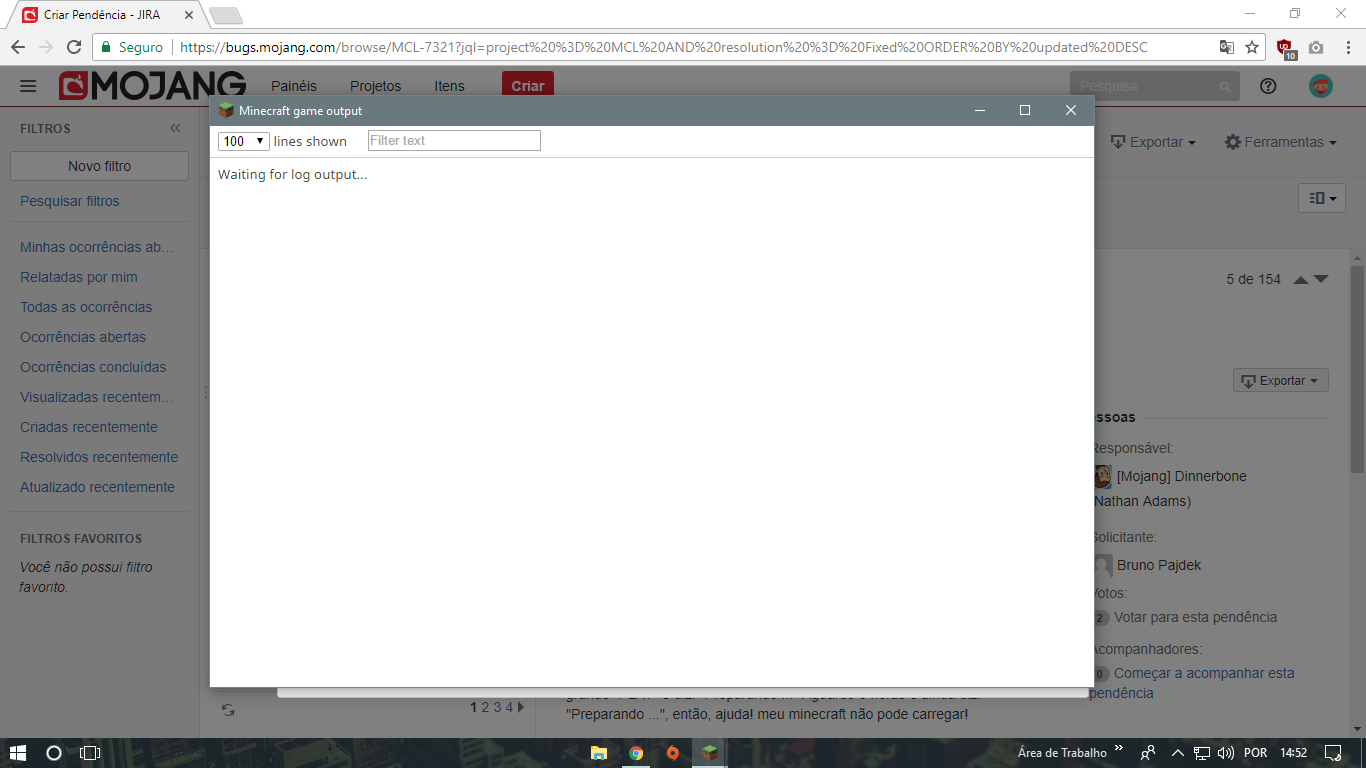 I already tried reinstalling Java, tried reinstalling the launcher, tried to delete the .minecraft folder, followed some tutorial videos and could not solve. Initially, I simply clicked on "play" and the launcher closed and the game did not open, I changed some things in the settings (appendix 2), and it is giving game output (appendix 3). I've been trying to fix it since yesterday and I can not solve it.