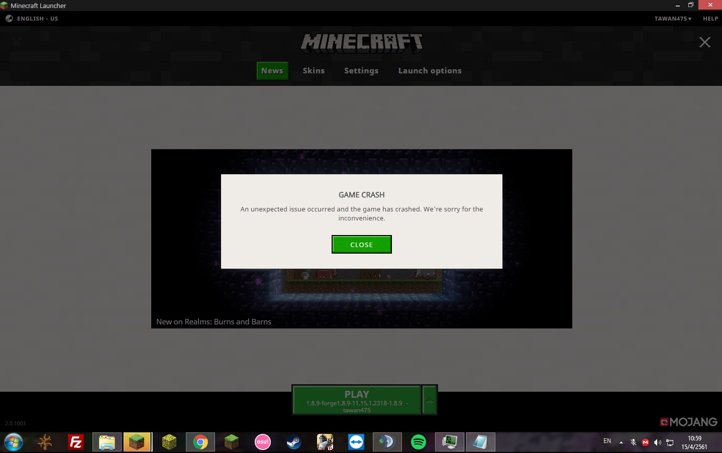 Your game, launcher or server is modified.If you can reproduce the issue in a vanilla environment, please recreate the issue.