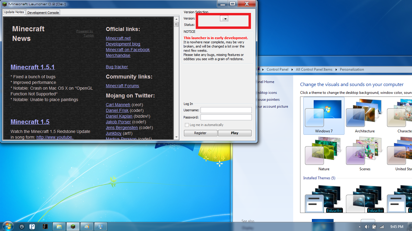 When I open the new minecraft launcher, The tumblr feed loads and the two tabs at the top load but the right panel fails to load while I have my custom theme selected when I switch to windows 7 default theme the right panel loads but the versions combobox is empty, and forces me to start the launcher with windows 7 default theme... I'm not asking for anything to be change because of me but is it possible to force a java look-n-feel?