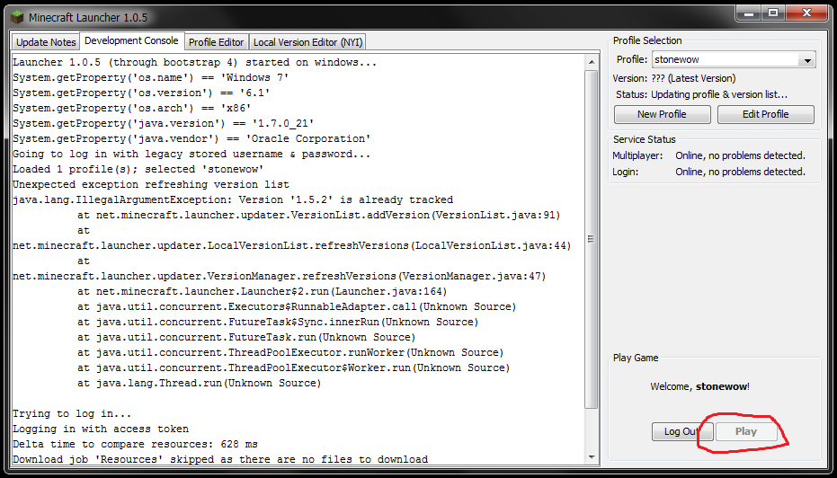 i cannot enter 1.6 i'm just wait in that stateand i cant use the "play" button: