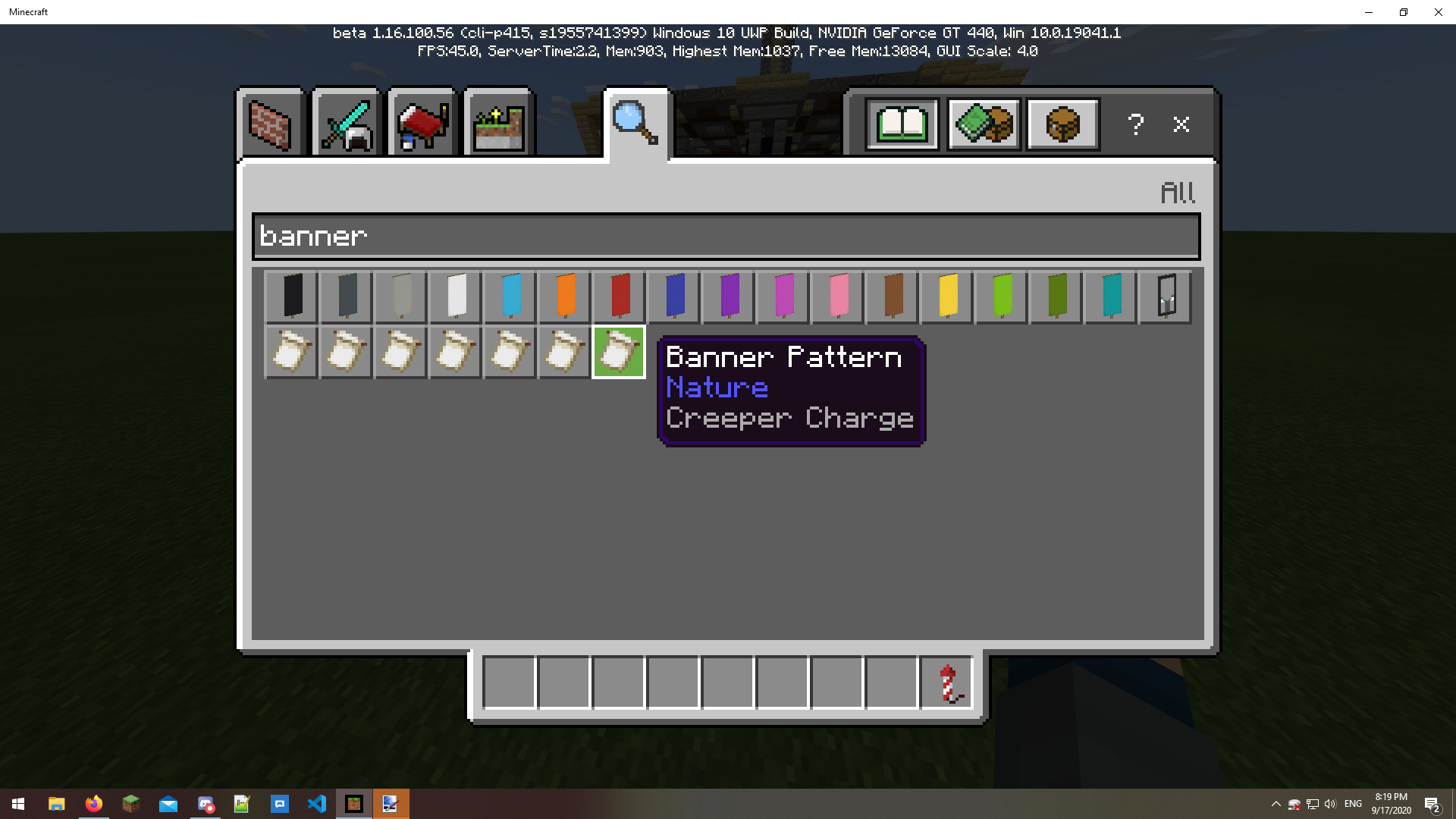 in place of the snout banner is a duplicate creeper banner, which also occurs as the first banner pattern listed