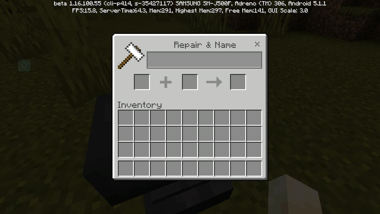 1. Set the UI Profile to Pocket UI2. Open the Anvil-> There is no hammer in the GUI