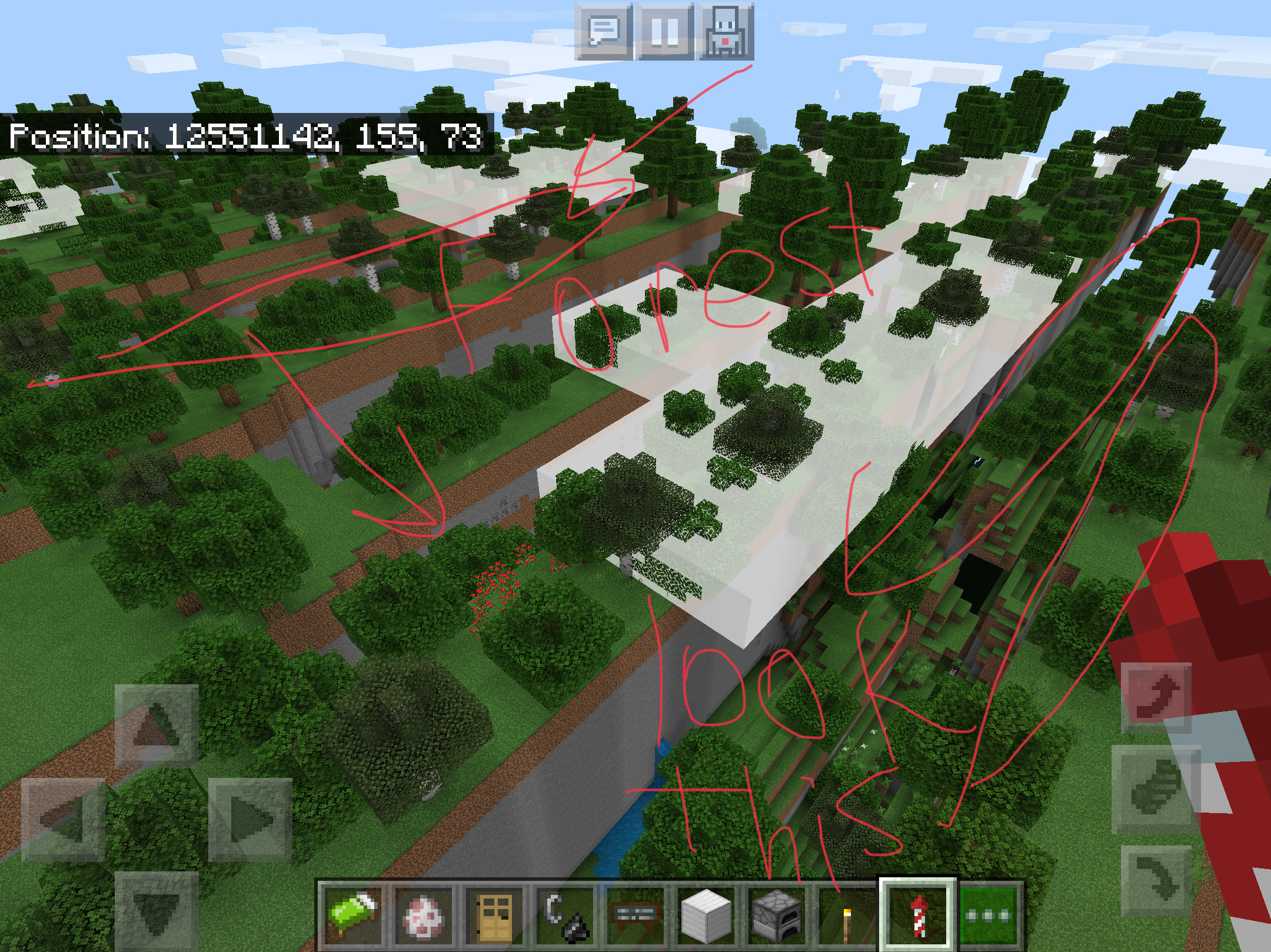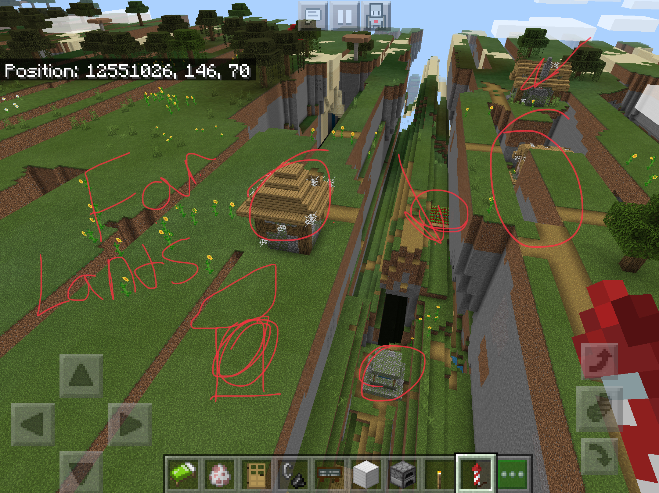 Far lands appears as a village with farming area on the bottom and desert and forest trees separate every 3-4 blocks, which was weird because if you look more closely, there is a 2D fence with no villagers/zombie villagers or animals. (Note: Entities fall down the world so that’s why there is no entities at the Far Lands.) Also, you can fall down trough the blocks and when you go to a cave, it enters spectator mode and back into survival/creative/adventure mode and into the void.