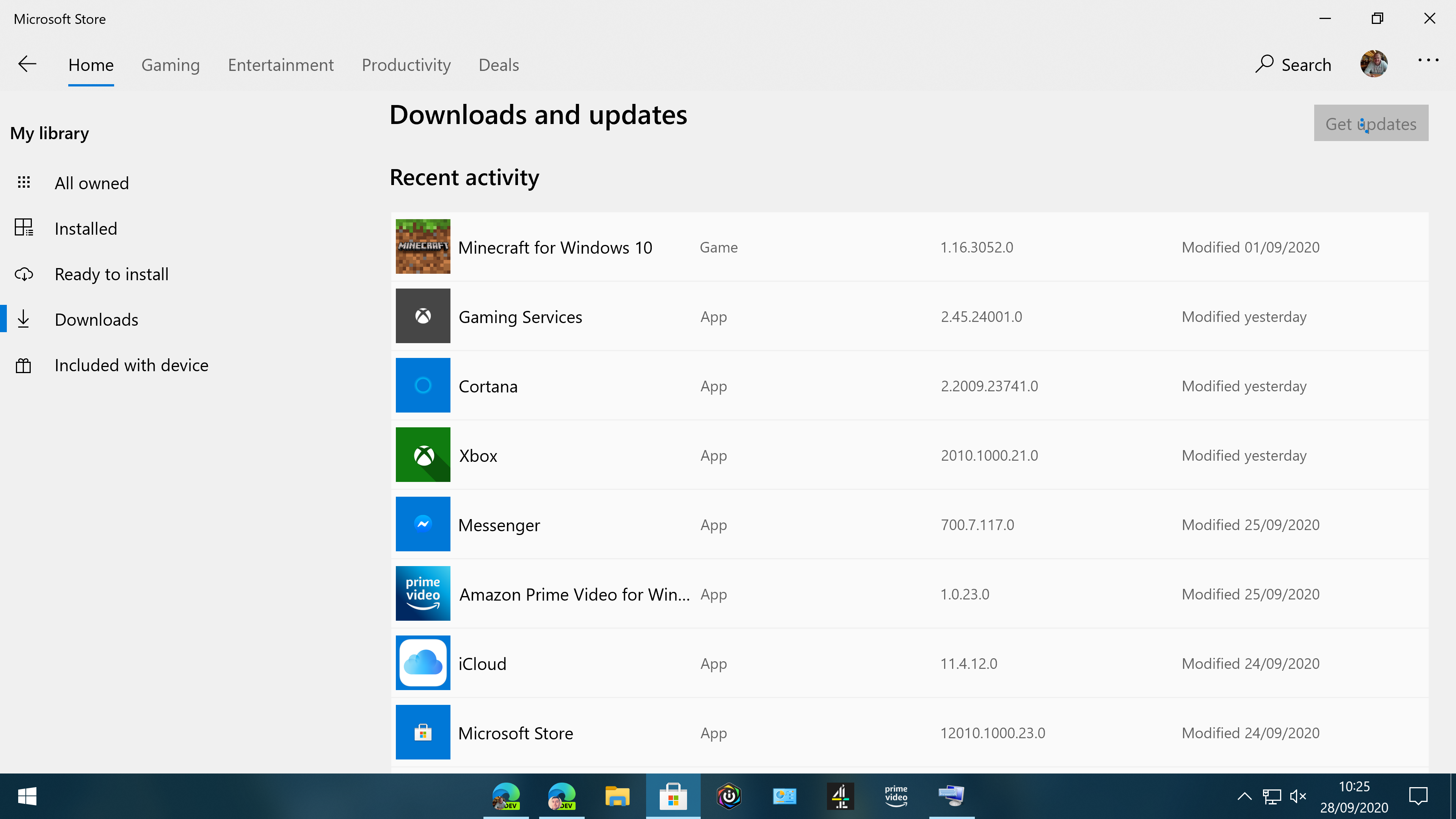 Near constant download of update for game via Microsoft Store, once downloaded shows as version 1.16.30.52 last modified 01/09/2020. Update is gone from list once store closed/re-opened.