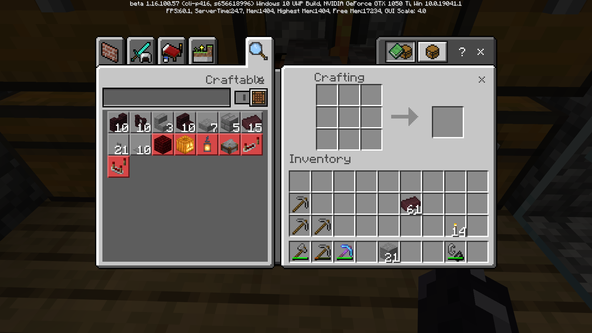 When i went to the Crafting table it didn't show the Netherbricks Block item...which was weird.
