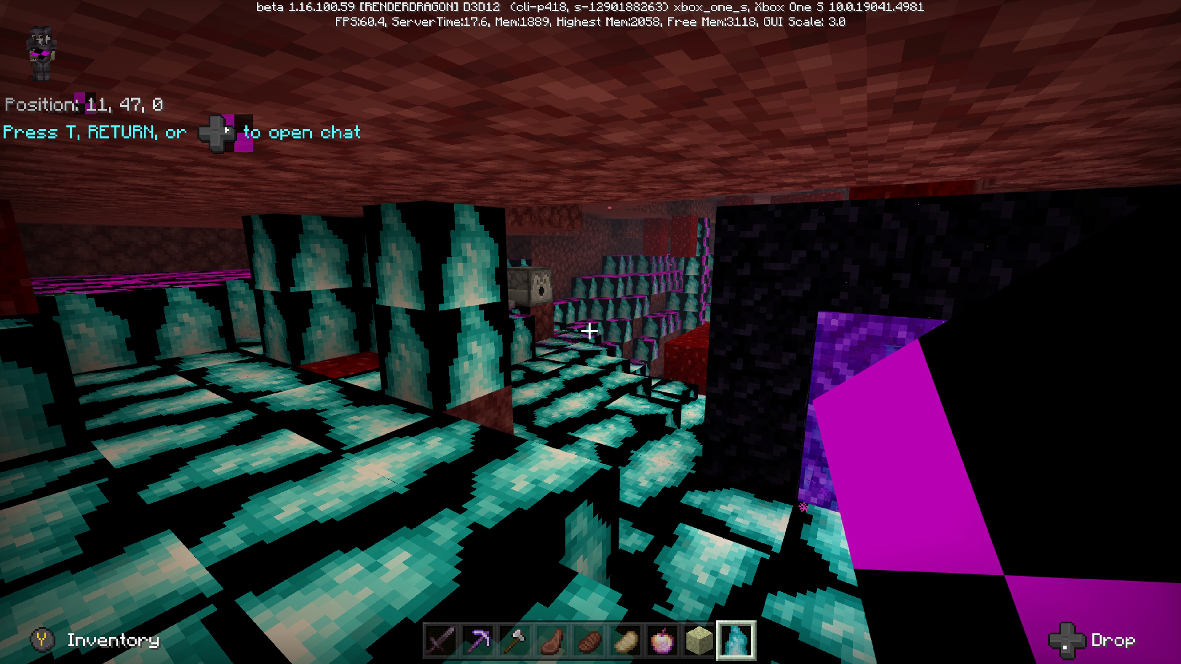 Main menu, setting menu have a black and purple pattern for missing textures this also includes in game. In game specific blocks for example soul lanterns, quarts stairs and netherack have a blue flame texture instead of their normal textures screenshots are provided
