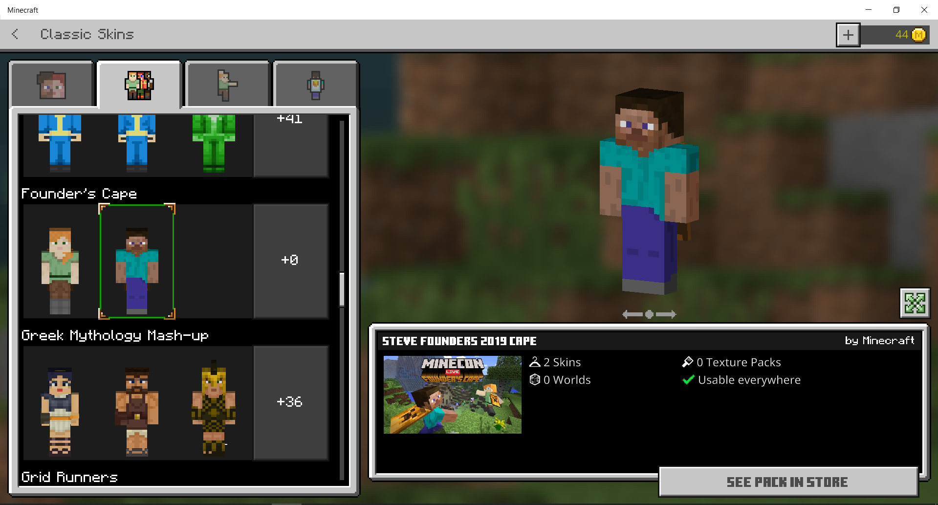 Uh..... usually I don’t have too many problems when I go to the bugs and reports page, but I don’t have Founders cape skin pack. I noticed a few skin packs are missing but man this just hurts. I don’t know if I should make a separate report for this (or look for the main one so I don’t have a duplicate) but for all that I care, I swear to Minecraft’s name I had it and I’m not lying, I don’t have much proof besides older worlds and the 10 year anniversary world itself, but I had it at some point.