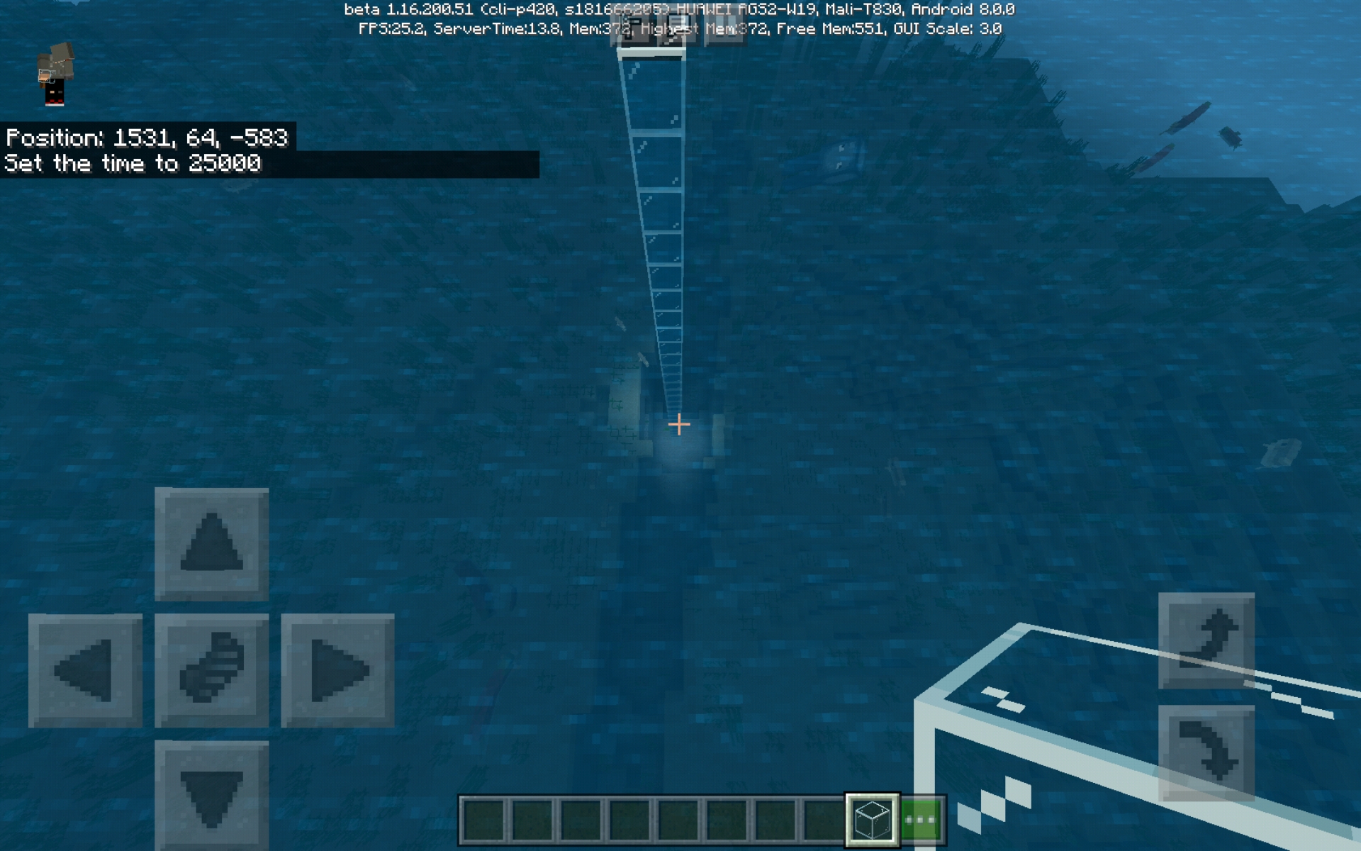 When you approach a tower of glass blocks that connects the sea floor to the surface, all the blocks light up (as with the night vision effect) instead of just that area.