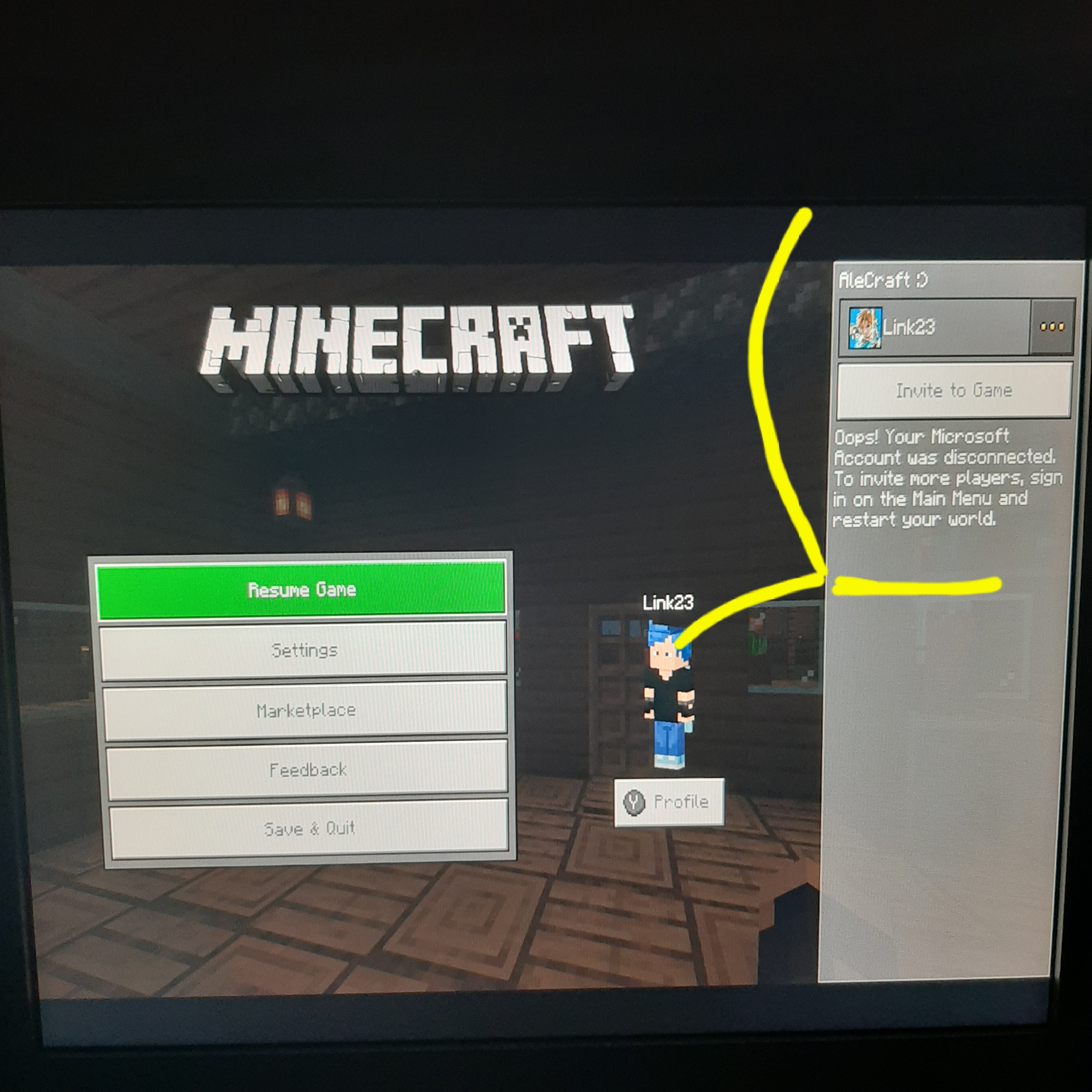 The most of the time when I open Minecraft and go to my world with the multiplayer activated I appear in the game menu the following text: Oops! Your Microsoft Account was disconnected. To invite more players, sign in to the Main Menu and restart your world.