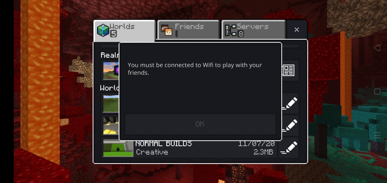 When trying to join a multiplayer world, a realm or a server while using mobile data it doesn't let you connect and shows a "You must be connected to wifi to play with your friends" message even though you enabled the "use cellular data" setting. Fixing this bug is an emergency since a big portion of players don't have acess to wifi including me and I just can't play at all.
